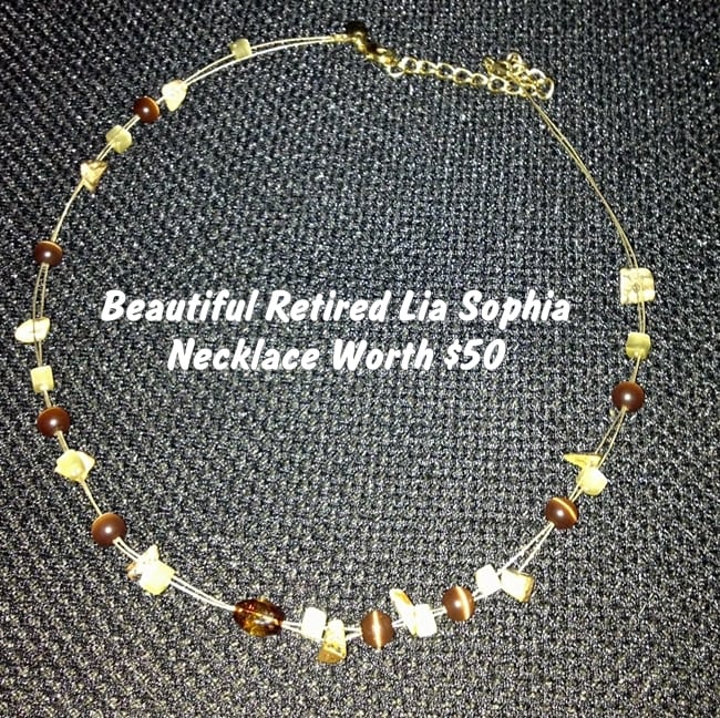 Laura has generously donated a retired Lia Sophia necklace (which means you can not purchase it anymore). It’s gorgeous, the picture above doesn’t do it justice. (Note to self: get jewelry display to take better jewelry pictures.)