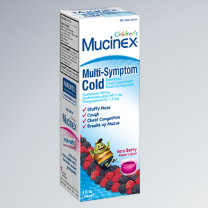 A stuffy nose + cough + chest congestion = one unhappy camper. When your child gets sick with more than one symptom, relieve what’s bothering your little one with Children’s Mucinex® Multi-Symptom Cold Liquid in Very Berry Flavor.