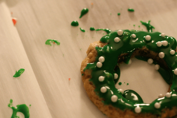 Our finished product! It was so easy and she did it all by herself. We actually used rose icing for the red….little fact: it makes an awesome RED on sugar cookies. For some reason that is the color it dries.