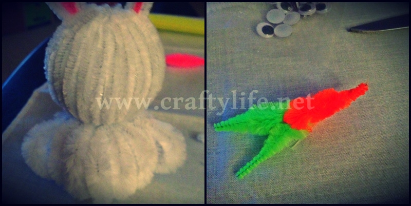 The carrot is just a double orange and green chenille bump stem twisted together.