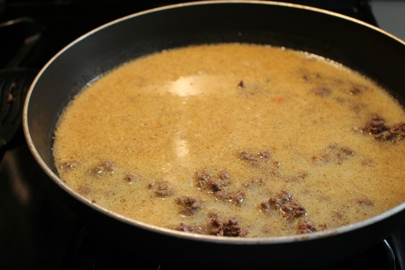 After browning the meat and draining it, I mixed all the ingredients as directed, covered it and let it simmer.