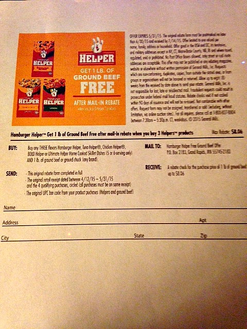 Right now there is a Hamburger Helper Rebate for a free pound of hamburger if you purchase 3 boxes of any Hamburger Helper.